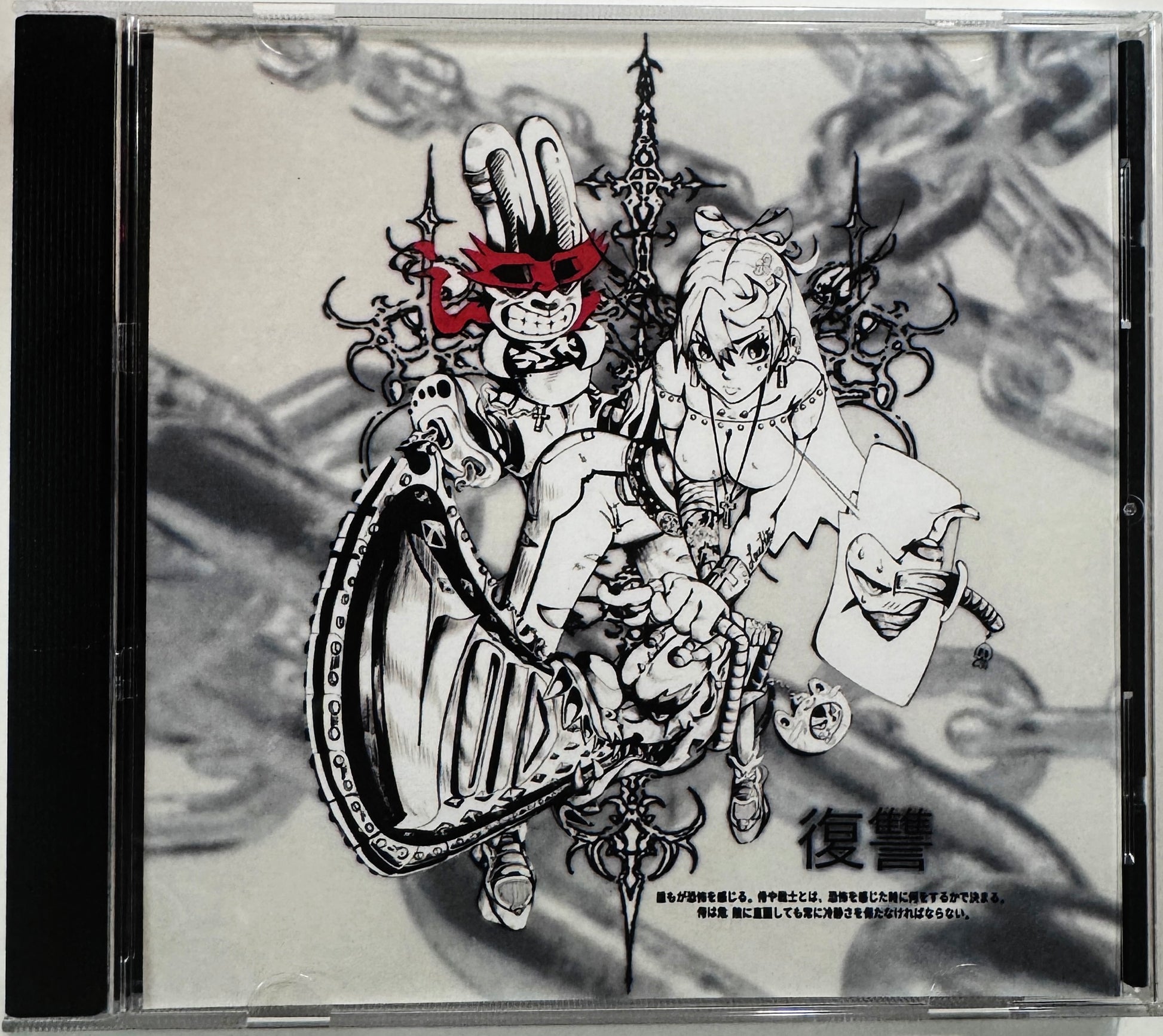 This mixtape features a striking, high-contrast cover illustrated in an aggressive, cyber-gothic style. The artwork shows a masked rabbit-headed character and a fierce anime-inspired girl surrounded by spiked ornamental shapes, chains, and oversized weapon elements. The black-and-white design, with sharp lines and chaotic symmetry, gives the project a dark, underground energy—perfect for a raw, experimental sound.